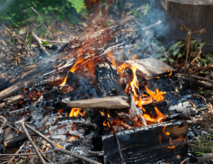 Make note of any chemicals lying around or combustible materials that could explode if a spark ignites it. A good rule of thumb is to keep the fire at least 10 to 15 feet away from your living space so that you’re not in danger of having any of your gear going up in flames.